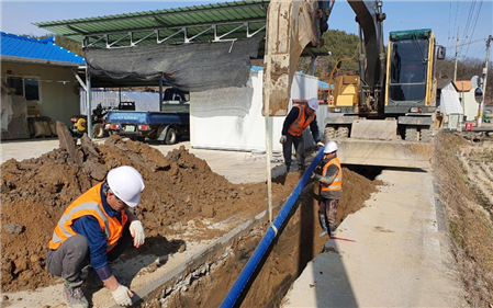 | ↑↑ 의성군 상수도 현대화 사업으로 311만톤/년 저감 생산원가 28억원 절감, 사진은 시공현장(사진 = 의성군청 제공) |